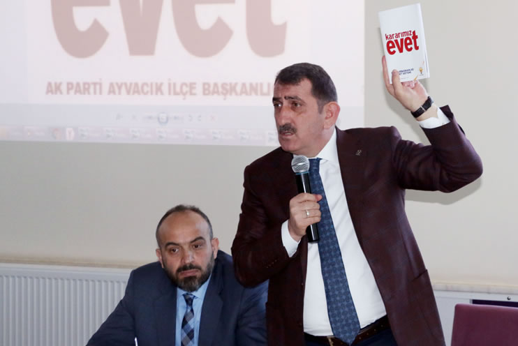 AK Parti Samsun Milletvekili Fuat Köktaş, partisinin Ayvacık İlçe Danışma Meclisi Toplantısı'na katılarak 16 Nisan'da yapılacak olan "Cumhurbaşkanlığı Hükümet Sistemi Halk Oylaması"nın genel faydaları hakkında bilgiler paylaştı.