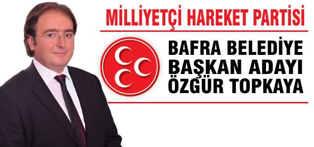 Milliyetçi Hareket Partisi Genel Merkezi Özgür Topkaya'yı MHP Bafra Belediye Başkan adayı olarak belirledi. Özgür Topkaya yarın İstanbul'da MHP Genel Başkanı Devlet Bahçeli tarafından açıklanacak.