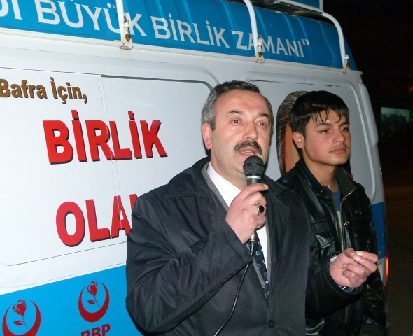 30 Mart Yerel seçimler öncesi Büyük Birlik Partisi (BBP) Belediye Başkan Adayı Serhat Mürtezaoğlu, Bafra ilçesinin Bahçeler ve Alparslan mahallesinde miting yaptı.