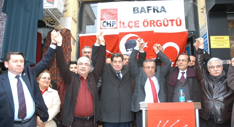 CHP Bafra ilçe Teşkilat binası önünde düzenlenen törende, açılış konuşması yapan Cumhuriyet Halk Partisi (CHP)Bafra İlçe Başkanı Nihat Oktay, "Cumhuriyet Halk Partisi ve Cumhuriyetimizin kurucusu büyük önderimiz Mustafa Kemal Atatürk'e çok şey borçluyuz. O kadar mutluyuz ki; genel başkanımız Sayın Kemal Kılıçdaroğlu’da, İstanbul 3.Sıradan ön seçime gidiyor. Bu demokrasinin zaferidir. Bütün kontenjanlarımız da, birinci sıra kadın milletvekili aday adaylarımıza ayrılmıştır. Buda Cumhuriyet Halk Partisinin kadına verdiği öneminin bir göstergesidir. Bütün adaylarımız, ön seçime girmektedir. Bu işte Cumhuriyet Halk Partisinin iktidara yürüyüşünün ilk göstergesidir. Bugün buraya toplanmamızın sebeplerinin bir tanesi de, 29 Mart 2015 Pazar günü yapılacak olan ön seçimde, Bafra'mızı temsil edecek, aday adaylarımızdan Şaban Sevinç'in aday adaylığını açıklaması için burada toplanmış bulunuyoruz" dedi.