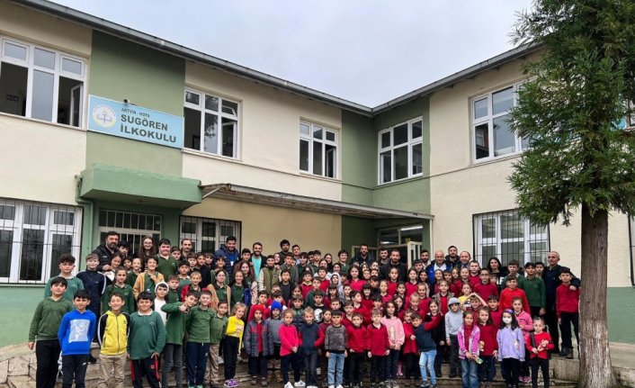 Artvin Hopaspor Teknik Direktörü Osman Özdemir ile futbolcular, Hopa Sugören İlkokulu'nu ziyaret etti.