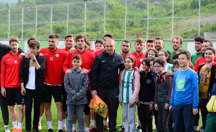 Antrenman öncesi Kanuni Ortaokulu öğrencileri futbolcularla bir araya geldi. Öğrenciler, teknik direktör Sözeri'ye çiçek verdi.