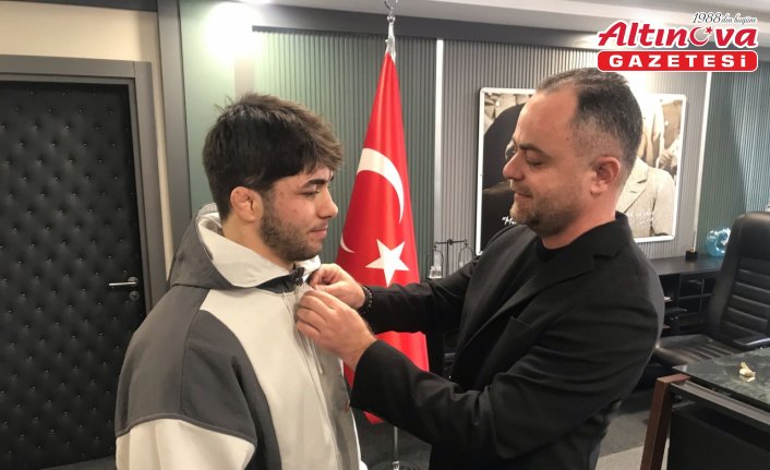 Başkan Demirci, genç güreşçiye altın hediye etti. ARTVİN (AA)