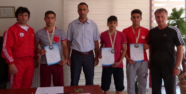 Balkan Şampiyonasından gelen Milli Sporcu ve Antrenörler Bafra Gençlik Hizmetleri ve Spor İlçe Müdürü Osman Şenocak'ı makamında ziyaret etti.