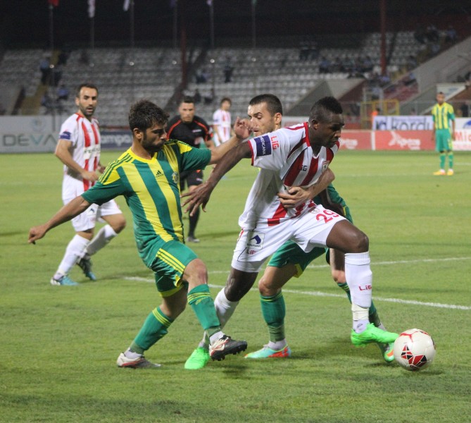 43'üncü dakikada Ofeodu'nun sağ kanattan ceza sahasına gönderdiği topla Mehmet Çakır buluştu. Tecrübeli futbolcunun şutunda top savunmadan geri döndü.