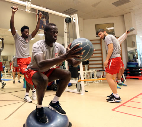 Kırmızı-beyazlı ekip, antrenör Kenan Yelek yönetiminde Nuri Asan Tesisleri'ndeki kondisyon salonunda çalıştı. Kültür fizik hareketleri yapan futbolcular, daha sonra ağırlık ve kuvvet çalışması gerçekleştirdi. Hafif sakatlığı bulunan Canberk Aydın, takımdan ayrı koştu.