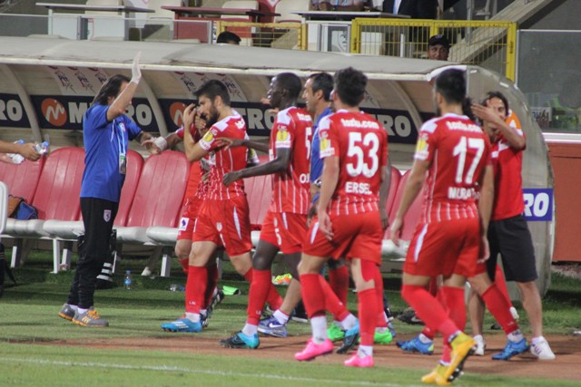 5. dakikada Samsunspor’un geliştirdiği ani atakta Musa Aydın’ın pasıyla buluşan Mustafa Sevgi ceza sahası dışından kaleci Soner’in üzerinden yaptığı aşırtma vuruşunda top yandan auta çıktı.