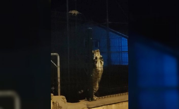 Okulun bahçe duvarındaki tel örgünün üzerine çıkan fare, yaklaşık 1,5 dakika kendisini yakalamaya çalışan kedinin manevralarını savuşturmayı başardı.
