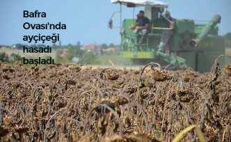 Türkiye'nin önemli ovalarından Bafra Ovası'nda ayçiçeği hasadı başladı.