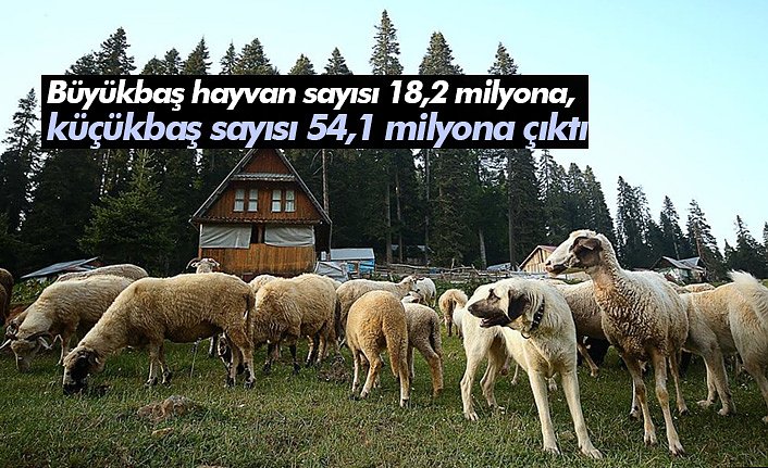 Büyükbaş hayvan sayısı, 2020'de bir önceki yıla göre yüzde 1,6 artışla 18 milyon 158 bin, küçükbaş sayısı da 11,6 yükselerek 54 milyon 113 bin baş olarak gerçekleşti.