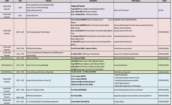 Fuar’da tarım sektörüne ilişkin konferansların da verilmesi planlanıyor. Fuar süresince ziyaretçilere; Çarşamba Ovası Tarımına Bir Bakış, Süt İneklerinde Üreme Yönetimi, Samsun İli Tarım Sektörü Üzerindeki Etkileri, Bahçe Ürünlerinde Ambalajın Önemi, Tarımsal Desteklemeler, Fındıkta Gübreleme, Arıcılıkta Karşılaşılan Güncel Sorunlar ve Çözümleri, Buzağılarda Karşılaşılan Önemli Hastalıklar ve Korunma Yöntemleri, Bitki, Besleme ve Hayvancılık gibi konularda konferanslar verilecek. Ayrıca; Tire Süt Kooperatifi Üretim Müdürü, Fuar’da kendi başarı hikayesini anlatacak.