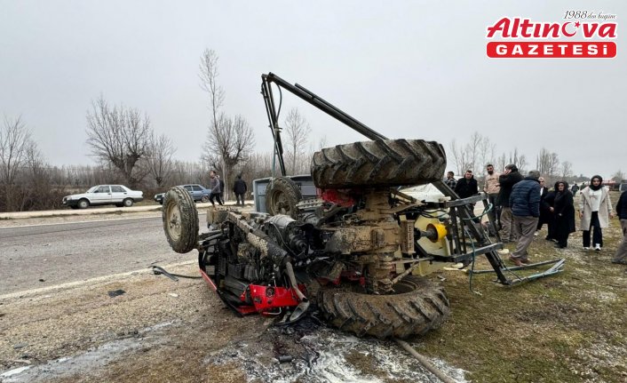 Alama köyü mevkisinde Aydın K. yönetimindeki traktörle sürücüsü öğrenilemeyen 60 KD 009 plakalı minibüs çarpıştı.