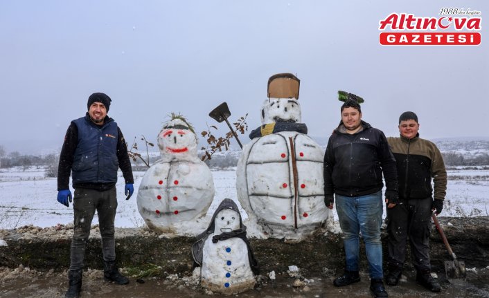 Elektrik ustası Behçet Demir ise kar yağışını fırsata çevirdiklerini belirterek "Çıraklarımızla birlikte yaptığımız kardan adamın büyük gövdesini taşımak için Efe Can arkadaşımızın kullandığı iş makinesinden yardım aldık. Bugün biraz çocukluğumuzu yaşadık. İşlerin de nispeten durgun olmasını eğlenceye çevirdik.” ifadelerini kullandı.
