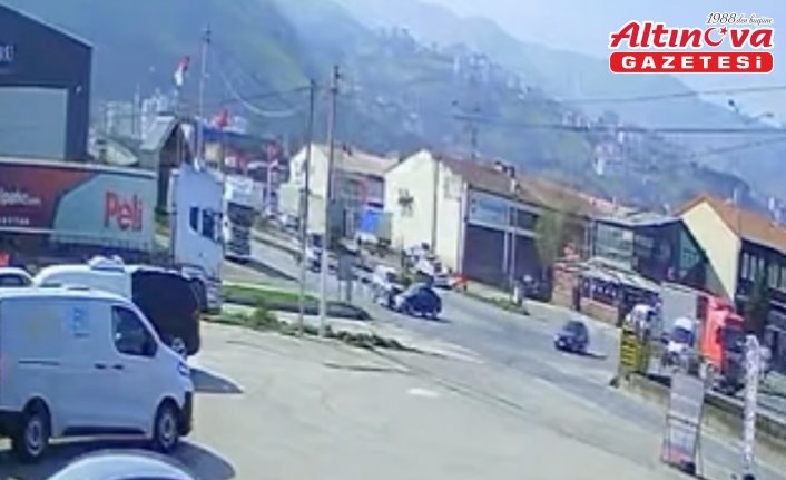 Öte yandan kaza anı, bölgedeki bir iş yerinin güvenlik kamerasınca kaydedildi.