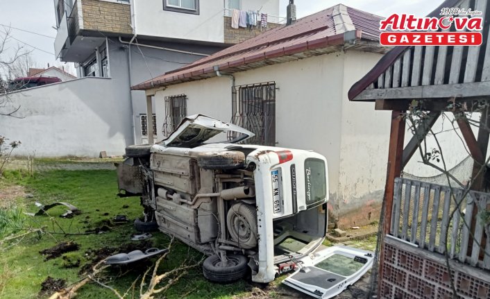 Samsun'un Terme ilçesinde otomobil evin bahçesine devrildi, sürücü hafif yaralandı.