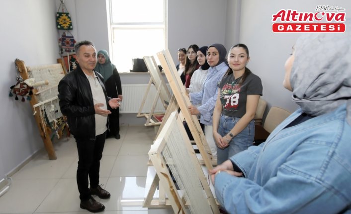 Kızık Kilimi dokuma tezgahına geçerek kilim dokuma deneyimi yaşayan Yılmaz, geleneksel el sanatlarına olan ilgisini gösterdi.