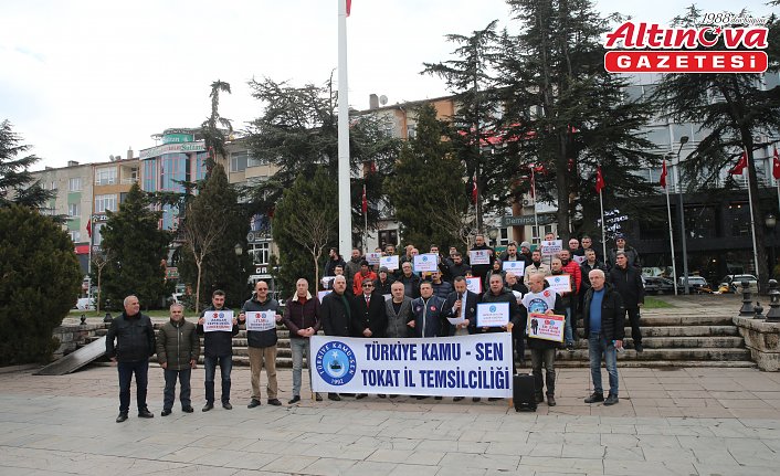 Türkiye Kamu-Sen Tokat İl Temsilcisi Selçuk Kaçmaz, "ek zam ve refah payı" ile ilgili basın açıklaması yaptı.