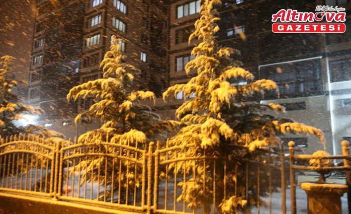 Kentte akşam saatlerinde başlayan kar yağışı etkisini sürdürüyor.