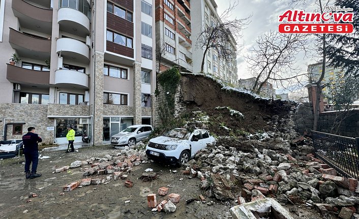 İstinat duvarı, olaydan saniyeler önce buradan ayrılan Karslıoğlu'nun aracının yanına park edilen 2 aracın üzerine düştü.