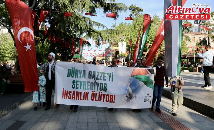Trabzon'da bir araya gelen Özgür Aksa Trabzon Platformu üyeleri, Filistin'e destek için yürüyüş yaptı.