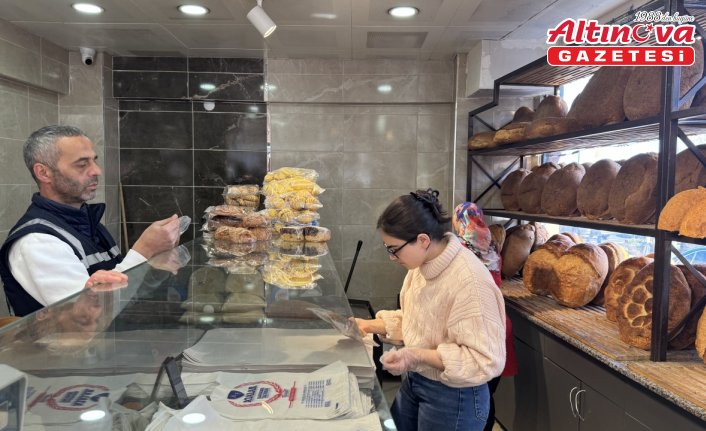 Unlu mamuller satışı yapılan fırınlarda incelemede bulunan ekipler, ekmek, simit ve pidelerin gramaj ile fiyatlarını kontrol etti.