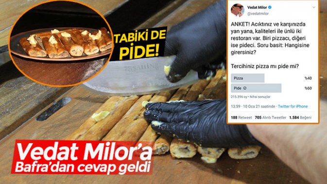 Dünyaca tanınan yemek eleştirmeni Vedat Milor ‘un sosyal medya hesabı üzerinden yaptığı anketinde Twitter takipçilerine "Pizza mı yoksa pide mi? sorusunu yöneltti.