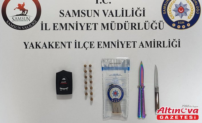 Samsun'un Yakakent ilçesinde bir araçta yapılan aramada, radar tespit cihazı ile mermi ve amaç dışı bıçak ele geçirildi.