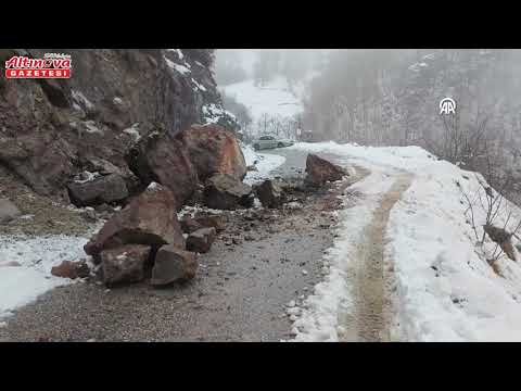 Yakakent'te sağanak nedeniyle kara yoluna kaya parçaları düştü