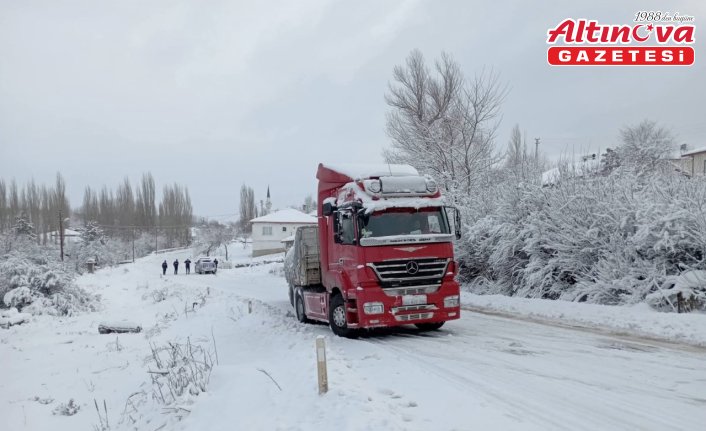 Tokat'ın Yeşilyurt ilçesinde kar nedeniyle bir tırın yolda kalması, ulaşımın aksamasına neden oldu.