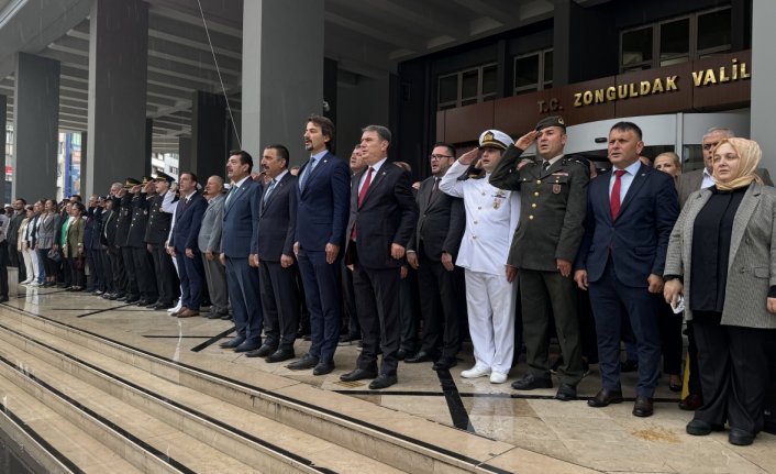Valilik önünde düzenlenen törende Vali Osman Hacıbektaşoğlu ve Zonguldak Belediye Başkanı Tahsin Erdem'in Atatürk Anıtı'na çelenk sunmasının ardından saygı duruşunda bulunuldu, İstiklal Marşı okundu.