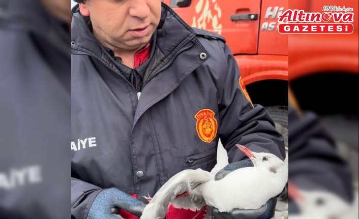 Ekipler, merdivenli araç yardımıyla martıyı bulunduğu yerden kurtardı.