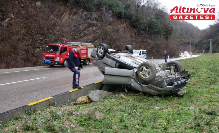 K.T'nin kullandığı 67 EN 433 plakalı otomobil, Zonguldak-Ankara kara yolunun 12. kilometresinde refüje çarparak devrildi.